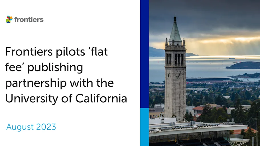 As a pioneer of open access publishing since 2007, Frontiers has extensive experience in co-developing partnership models with a wide range of institutions based on their individual research and budgetary needs. We have drawn on this in-depth knowledge to implement a “transformed” institutional open access model – a transparent fully open access flat fee model – representing a shift in how institutions can transition to open access without being locked into paywalled subscription ‘big deals.’ This will enable research libraries and institutions to support their authors and researchers with unlimited open access publishing in all Frontiers’ journals.